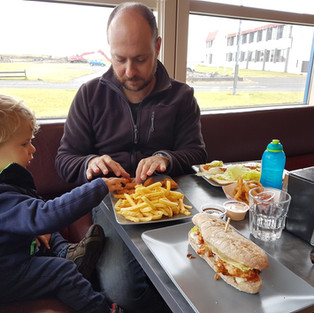 עשינו סיבוב בעייריה הקטנה ובקושי ראינו אנשים, עלינו בספונטניות על שייט בין המפרצים שמצפון לחצי האי לצפייה ב- puffins הציפור הלאומית של איסלנד. השייט היה נעים ויפה, וראינו איים קטנים וסלעים בולטים מהמים, אבל ציפורים ראינו בקושי :) בסוף השייט הימאים שלו רשת ענקית מהמים ופתחו צפדות בשביל כולם לטעום טרי ונא.